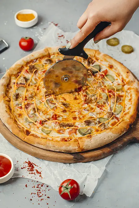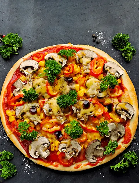 We specialise in freshly prepared pizzas, each crafted with care using premium ingredients. Our dough is proofed daily, and our sauces are slow‑cooked for a rich, authentic taste. Every topping is chosen to complement the flavours you love.