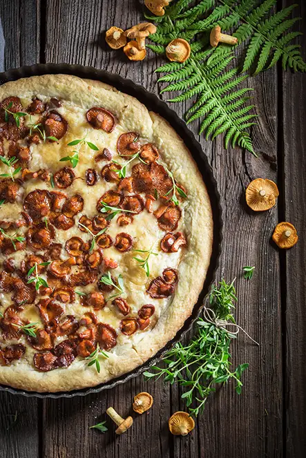 Fresh mushrooms and mozzarella on a rich tomato base. A comforting vegetarian favourite, perfect for delivery or collection.