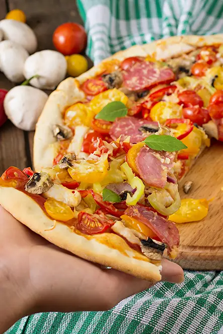 Capricciosa– Ham, mushrooms, artichokes, and olives.